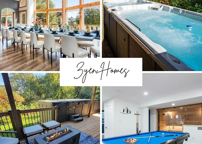 Large Chalet Hideaway - Hottub-Swimspa - Sauna זהו בית נופש עם בריכת שחייה פרטית ממוקם במחוז Blue Mountain Ski של העיר ההרים הכחולים. Badlands Double זה כ-18 דקות הליכה משם, בזמן שרכבת הרים רידג' ראנר שוכן במרחק של פחות מ-25 דקות הליכה מהנכס.